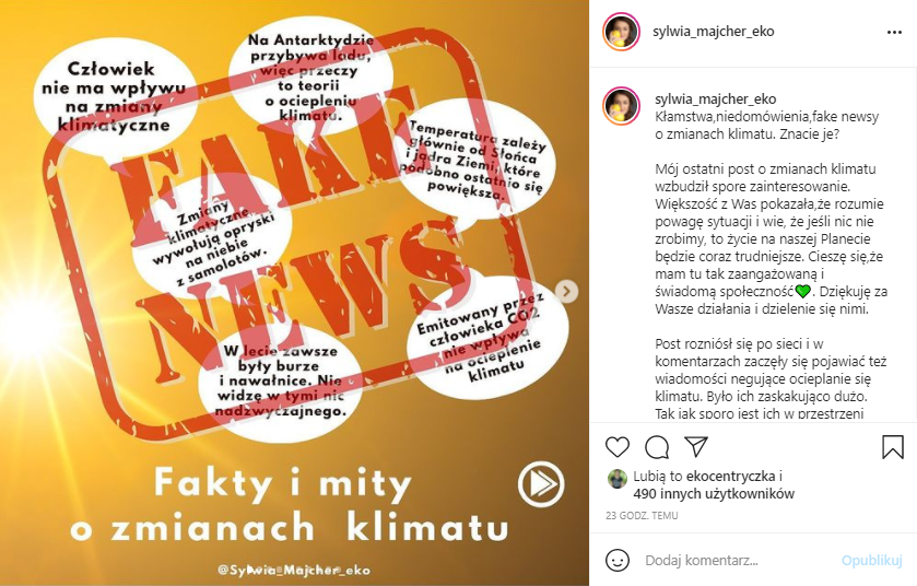 A dzisiaj Poranny Trop w klimacie eko. Po pierwsze, bo dawno nie było. Po drugie, dlatego, że Sylwia Majcher poruszyła na swoim instagramowym koncie – sylwia_majcher_eko – bardzo ważny temat: najpopularniejsze fake news związane z ocieplaniem się klimatu. Fakty i mity!